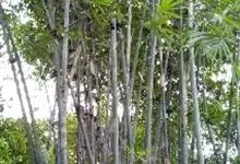 粉单竹是禾本科簕竹属乔木状竹类植物,大型丛生乔木状,竿直立,幼时被白色蜡粉;筝鞘初被白蜡粉及小刺毛,片淡黄绿色,强烈外翻,篷环有棕褐色捐毛;竿分枝高,数枝族生,无毛被蜡粉;叶披针形至线状披针形,…全部>>