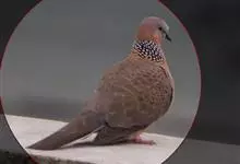 珠颈斑鸠,别名花斑鸠、珍珠鸠、花脖斑鸠、鸪鹪,是鸠鸽科副斑鸠属鸟类。体型中等,体长27~34cm,体重120~205g,雌鸟和雄鸟羽色相似,但雌鸟不如雄鸟羽色亮泽。珠颈斑鸠前额至头顶羽色稍淡,…全部>>