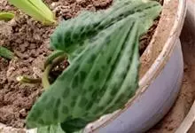 油点百合属于百合科的多年生草本植物,别称是豹纹红宝。原产于南非。株高约10-15公分,紫红色的茎肥大呈酒瓶状,茎顶着生3-5片肉质叶子,叶银绿色并具有不规则的斑点,叶背紫红色。花期春夏季,圆锥花序,…全部>>