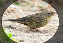 粉红胸鹨:属小型鸣禽,体重18-27克,体长13-18厘米。非繁殖期粉皮黄色的粗眉线明显,背灰而具黑色粗纵纹,胸及两胁具浓密的黑色点斑或纵纹。虹膜暗褐色;嘴黑褐色;下嘴基部色较淡,呈角褐色;跗蹠和趾…全部>>