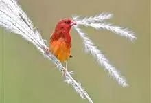 红梅花雀小型鸟类,体长9-10厘米。雄鸟通体朱红色,背、肩、胸等满布白色小斑点,两翅和尾黑褐色均具白色端斑,嘴红色,脚蜡黄色。雌鸟上体淡褐色或赭褐色,翅上中覆羽、大覆羽和内侧飞羽末端具白色斑点,…全部>>