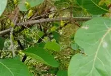 粉背黄栌叶卵圆形,较大,长3.5-10厘米,宽2.5-7.5厘米,无毛,但叶背显著被白粉;叶柄较长,1.5-3.3厘米,…全部>>