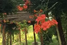 凌霄 Schum.),别名上树龙、五爪龙、九龙下海等,为紫葳科凌霄属的攀援藤本植物。其茎木质,以气生根攀附于它物之上。叶对生,为奇数羽状复叶;小叶卵形至卵状披针形,边缘有粗锯齿;顶生疏散的短圆锥花序,…全部>>
