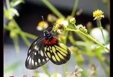 报喜斑粉蝶是粉蝶科斑粉蝶属的一种动物,又名红肩粉蝶、藤粉蝶等。幼虫群集性很强,从同一卵块孵化出的幼虫,幼龄期全部群集在一起取食,高龄幼虫常分散成小群。幼虫群集危害叶片,造成秃枝,严重者可将树吃成光杆,…全部>>