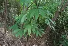 木薯,为大戟科木薯属的一种直立灌木,又名木番薯、树薯。木薯高1.5-3米;块根圆柱状。叶纸质,轮廓近圆形;裂片倒披针形至狭椭圆形;托叶三角状披针形。圆锥花序顶生或腋生,花萼带紫红色且有白粉霜。…全部>>