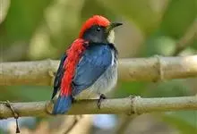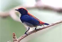 朱背啄花鸟:体重6-8克,体长81-97毫米。是一种小型的黑色及红色啄花鸟。雄鸟顶冠、背及腰猩红色,两翼、头侧及尾黑,两胁灰,下体余部白色。雌鸟上体橄榄色,腰及尾上覆羽猩红,尾黑。亚成鸟清灰色,嘴橘黄,…全部>>