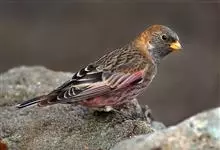 粉红腹岭雀:为燕雀科岭雀属的鸟类。体重25-34克,体长150-182毫米。是一种中等体型的深色岭雀。两翼及下体玫红色。东北亚种的雄鸟额、顶冠及脸灰;上背黄褐;上体深褐,…全部>>