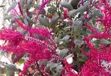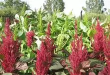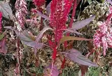 千穗谷一年生草本;茎绿色或紫红色,分枝,无毛或上部微有柔毛。叶片菱状卵形或矩圆状披针形,具凸尖,基部楔形,无毛,上面常带紫色;叶柄无毛。圆锥花序顶生,直立,圆柱形,不分枝或分枝,由多数穗状花序形成,…全部>>