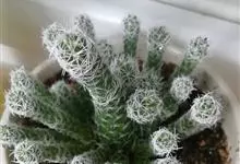 玉翁是仙人掌科、乳突球属多年生草本多浆植物。植株幼时呈扁球形或球形,以后长成圆筒状,直径10厘米左右,淡绿色。疣状突起呈圆锥形,新刺座的白色绵毛很短,疣突腋部则有20根白色长绵毛,绵毛长4厘米左右,…全部>>