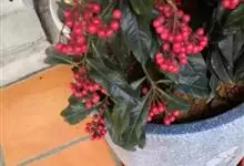 朱砂根是报春花科紫金牛属植物,又名铁凉伞、红铜盘、百两金、大罗伞、开喉箭等,为常绿小灌木,高1~2米,茎粗壮,无毛,除侧生特殊花枝外,无分枝,叶片革质或坚纸质,椭圆形、椭圆状披针形至倒披针形,…全部>>