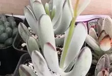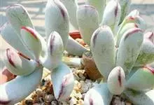 福娘为景天科银波锦属的肉质草本植物。对生的叶片呈短棒状,叶色灰绿,表覆白粉,叶缘外围镶着紫红色,叶片外形多有变化有短圆形、厚厚的方形等不同叶形;花期夏秋。福娘原产于非洲西南部的纳米比亚,…全部>>