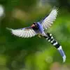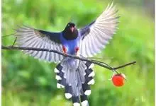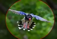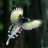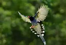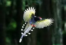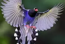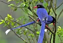 台湾蓝鹊:体长64至65厘米,翼展18至21厘米,尾长约40厘米,尾羽长占了总体长的三分之二。头、脸、颈、喉、胸都是黑色,黄色的眼珠包围黑色的瞳孔,鲜红色的鸟喙、双脚,…全部>>