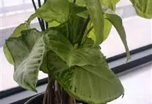 合果芋是天南星科,合果芋属多年生常绿草本植物,合果芋的茎节具气生根,攀附他物生长。叶片呈两型性,箭形或戟形;叶基裂片两侧常着生小型耳状叶片。佛焰苞浅绿或黄色。合果芋一般不易开花。…全部>>