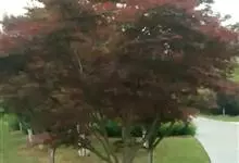 红枫,园艺种,槭树科槭属落叶小乔木,高5~8 m;树冠伞形,枝条开张,细弱。单叶对生,近圆形,薄纸质,掌状7~9深裂,裂深常为全叶片的1/2~1/3,基部心形,裂片卵状长椭圆形至披针形,先端尖,…全部>>