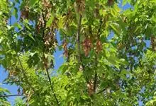 糖槭,无患子科槭树属乔木。树冠圆形,树皮黄褐色或灰褐色;当年生枝绿色,老枝黄褐色;奇数羽状复叶,叶缘具疏锯齿,绿色;雌雄异株,雌花为总状花序,花小下垂;翅果扁平,两果开展成锐角或近直角。花期4-5月,…全部>>