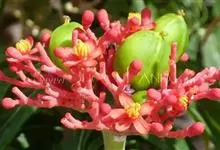 佛肚树是大戟科麻风树属的直立灌木。株高可达1.5米;茎基部或下部通常膨大呈瓶状;枝条粗短,具散生突起皮孔;叶盾状着生,近圆形或宽椭圆形,先端圆钝,基部平截或钝圆,托叶分裂呈刺状,宿存;花序顶生,…全部>>