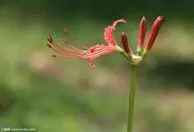 石蒜[学名:Lycoris radiata Herb.],是石蒜科石蒜属的多年生草本植物,别名彼岸花、红花石蒜、死人花、蟑螂花、龙爪花等。石蒜的叶狭带状,中间有粉绿色带,秋季出叶。伞形花序,花鲜红色。…全部>>