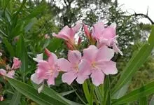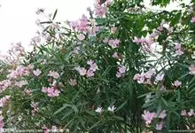 夹竹桃,又名红花夹竹桃、欧洲夹竹桃,是夹竹桃科夹竹桃属的一种常绿直立大灌木,枝条灰绿色,含水液。叶披针形,3叶轮生。聚伞花序顶生,花冠粉红至深红色,花冠漏斗状,有特殊香味。蓇葖果,圆柱形。种子长圆形,…全部>>