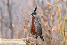 红腹角雉属于鸡形目雉科,雄鸟体羽及两翅主要为深栗红色,满布具黑缘的灰色眼状斑,下体灰斑大而色浅。雌鸟上体灰褐色,下体淡黄色,杂以黑、棕、白斑。全部>>