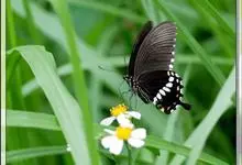 玉斑凤蝶Papilio helenus 别名白纹凤蝶,是凤蝶科凤蝶属美凤蝶亚属大型种类。雌雄同型;体翅皆黑色,后翅正面中室外有3个并列的白色斑,亚外缘有1列模糊的新月形红色斑,…全部>>
