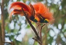 大极乐鸟是极乐鸟属中最大的鸟种。成年雄鸟体长可达到43厘米,雌性可达35厘米。雄鸟的额、颊、喉等墨绿色;头、颈黄色;上体暗赤栗色;腹部葡萄红色,胁部有长饰羽,其基部橙黄,中部黄色,…全部>>