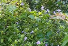 假杜鹃是爵床科假杜鹃属的小灌木。高达2米,茎被柔毛,长枝叶为椭圆形、长椭圆形或卵形,两面被长柔毛,腋生短枝的叶小,花在短枝上密集,小苞片披针形或线形,花冠蓝紫或白色,冠檐裂片长圆形,花丝疏被柔毛,…全部>>