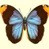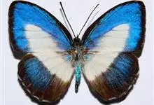 天堂凤蝶翅展可达105mm。前、后翅自基角至后缘约1/2~2/3端为纯净的宝蓝色,后角至后缘1/3~1/2端为黑色,后翅有黑色的尾突。翅背面为棕褐色。全部>>