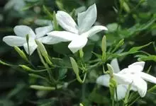 素馨花,木犀科素馨属多年生的攀援灌木植物。攀援灌木,小枝圆柱形,具棱或沟;叶对生,叶轴常具窄翼,小叶片卵形或长卵形;聚伞花序顶生或腋生,花序梗长,苞片线形,花萼无毛,裂片锥状线形,花冠白色,…全部>>