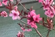 紫叶桃花是李亚科,桃属植物桃的变种,叶为窄椭圆形至披针形,长15厘米,宽4厘米,先端成长而细的尖端,边缘有细齿,暗绿色有光泽,叶基具有蜜腺;树皮暗灰色,随年龄增长出现裂缝;花单生,从淡至深粉红或红色,…全部>>