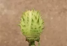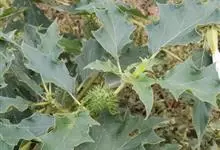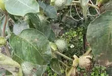 曼陀罗,茄科曼陀罗属一年生大型草本植物,全株光滑。有臭气;叶呈广卯形,边缘具不规则波状浅齿裂;花单生于枝杖间或叶腋,直立,有短梗;花萼是筒状裂片三角形,颜色为白色或淡紫色;果实为蒴果卵状,…全部>>