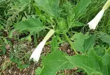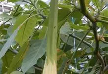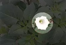 洋金花是茄科曼陀罗属植物,一年生草本植物,全株近于无毛。茎直立,圆柱形,高30~100cm,基部木质化,上部呈义状分枝。叶互生,上部的叶近于对生;叶柄长2~6cm,表面被疏短毛;叶片卵形、长卵形或心形,…全部>>