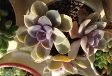 紫珍珠是景天科石莲花属的多年生肉质草本植物。植株中小型;叶片肉质,匙形,呈莲座状紧密排列;叶片粉紫色,叶缘呈粉白色,光照充足时颜色亮丽,不足时叶色会呈现深绿色或灰绿色,叶面光滑,被轻微白粉,…全部>>