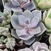 紫珍珠是景天科石莲花属的多年生肉质草本植物。植株中小型;叶片肉质,匙形,呈莲座状紧密排列;叶片粉紫色,叶缘呈粉白色,光照充足时颜色亮丽,不足时叶色会呈现深绿色或灰绿色,叶面光滑,被轻微白粉,…全部>>