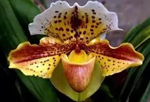 兜兰又称拖鞋兰。兰科多年生草本。多数为地生种,杂交品种较多。是栽培最普及的洋兰之一。主要分布亚洲热带和亚热带林下。喜温暖、湿润和半阴的环境。茎甚短;叶片带形或长圆状披针形,绿色或带有红褐色斑纹。…全部>>