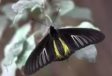 荧光裳凤蝶是凤蝶科裳凤蝶属的一种大型蝴蝶,该物种共有3个亚种。该蝶飞翔的时候姿态优美,前翅黑色,后翅金黄色和黑色交融的斑纹在阳光照射下金光灿灿,显得华贵美丽。幼虫寄主为多种马兜铃属的植物,取食马兜铃…全部>>