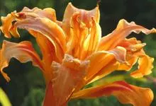 重瓣萱草 L. var. kwanso Regel),百合科萱草属植物。根近肉质,中下部有纺锤状膨大;花桔黄色,花被裂片多数,雌雄蕊发育不全。花被管较粗短,长2-3厘米;内花被裂片宽2-3厘米。…全部>>