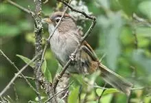 棕头雀鹛为鸦雀科,褐鹛属小型鸟类,体长10-13厘米。头顶栗褐色具黑色侧冠纹。上体茶黄色,飞羽外侧表面灰白色,内侧表面红棕色,内外二色之间夹有黑色。颏、喉白色具不明显的暗色纵纹,胸沾葡萄灰色,…全部>>