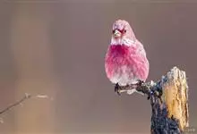 北朱雀,是燕雀科朱雀属鸟类。雄鸟额和头顶前部珠白色具窄的粉红色羽缘,在头顶前部形成极明显的银白色鳞状斑,头顶后部、枕、头侧和后颈粉红色。背、肩灰褐色,腰和尾上覆羽为鲜亮的粉红色无黑褐色纵纹,腹中央白色。…全部>>