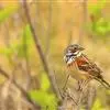 栗斑腹鹀:属小型鸣禽。体重19-25克,体长145-167毫米。头顶至背栗红色,眼先和颧纹黑褐色,黑色颧纹上还有一白纹,耳羽褐色或灰褐色,眉纹白色或灰白色。背、肩具黑色纵纹,腰至尾上覆羽砖红色无纵纹,…全部>>