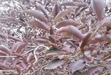 紫叶李是蔷薇科李属樱桃李的一个品种,别名红叶李、真红叶李等,落叶灌木或小乔木。其多分枝,枝条细长,暗灰色,小枝暗红色,无毛;冬芽卵圆形,紫红色;叶片椭圆形、卵形或倒卵形,极稀椭圆状披针形,…全部>>