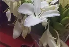 姜花又名野姜花。是姜科姜花属的多年生草本植物,茎高1-2米;叶片长圆状披针形或披针形,叶面光滑,叶背被短柔毛;穗状花序顶生,椭圆形,花芬芳,白色;蒴果卵状三棱形,微黄绿色;种子鲜红色,具橘红色的假种皮。…全部>>