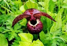 西藏杓兰:植株高15-35厘米,具粗壮、较短的根状茎。茎直立,无毛或上部近节处被短柔毛,通常具3枚叶。叶片椭圆形、卵状椭圆形或宽椭圆形。花序顶生,具1花;花苞片叶状,椭圆形至卵状披针形,花大,俯垂,…全部>>