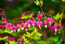 荷包牡丹 Fukuhara),是罂粟科荷包牡丹属的多年生草本植物,株高30-60厘米,具肉质根状茎;茎直立呈圆柱形;叶二回三出全裂,状似牡丹叶;总状花序顶生,基部为心形,花瓣紫红色至粉红色,稀白色,…全部>>