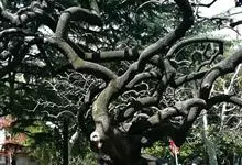 槐 Schott),豆科槐属的落叶乔木。树皮暗灰色,树冠球形,老时则呈扁球形或倒卵形。枝叶密生,羽状复叶。圆锥花序顶生,花蝶形,夏季开黄白色花,略具芳香。荚果肉质,念珠状不开裂,黄绿色,常悬垂树梢,…全部>>