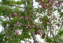 红花刺槐是豆科刺槐属的植物。其干皮深纵裂;枝具托叶刺,羽状复叶互生,叶片卵形或长圆形,具芒尖;基部圆形。花两性;总花序下垂;花冠粉红色,芳香;果条状长圆形,腹缝有窄翅。花期4~5月,果期9~10月。…全部>>