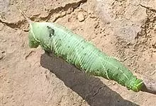 烟草天蛾,又名传粉夜蛾,是天蛾科的一种蛾,在美洲大陆大部分地区可见。它很容易与番茄天蛾混淆。两者长相相似,且属于同一属。其幼虫都以茄科植物的叶子为食。烟草天蛾两侧有7对斜线,番茄天蛾则有8个V形图案。…全部>>