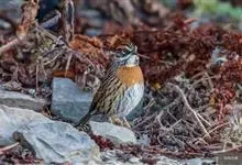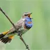 蓝点颏亦称“蓝喉歌鸲”,通称蓝靛颏儿。身体大小和麻雀相似,体长12-13厘米,体重17-18克。头部、上体主要为土褐色。眉纹白色。尾羽黑褐色,基部栗红色。颏部、喉部辉蓝色,下面有黑色横纹。下体白色。…全部>>