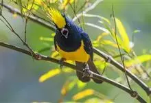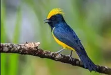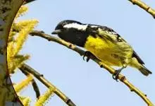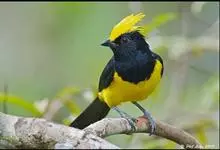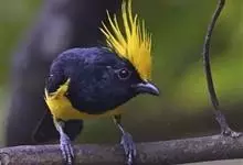 冕雀:共有4个亚种。体长20-21厘米,体重34-49克。具蓬松的黄色长型冠羽。雌鸟似雄鸟,但喉及胸深橄榄黄色,上体沾橄榄色。不会被误认的体大的黄色及黑色山雀。混群栖于原始林及次生林的林冠层,…全部>>