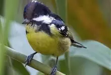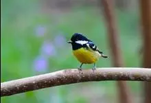 黄腹山雀是雀形目山雀科山雀属鸟类。虹膜褐色或暗褐色;嘴蓝黑色或灰蓝黑色;头、喉胸斑黑色,颊斑、颈后斑白色;上体蓝灰色,腰银白色;翼具两排白色点斑;下胸、腹鲜黄色;尾黑色,…全部>>