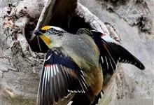 红翅旋壁雀:体重15-23克,体长120-178毫米。是一种体型略小的鸟类。尾短而嘴长,翼具醒目的绯红色斑纹。飞羽黑色,外侧尾羽羽端白色显著,初级飞羽两排白色点斑飞行时成带状。繁殖期雄鸟脸及喉黑色,…全部>>
